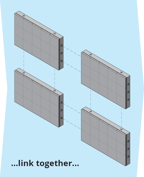 DDS modular LED screens are constructed from full-color, LED diode equipped, interlocking ImageCell™ cabinets - assembled together to achieve a high resolution, full-motion, seamless video display. Furthermore, ImageCell™ cabinets can be arranged in many configurations to create custom display sizes and aspect ratios.